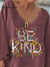 "Be Kind" Positive Slogan And Autumn Harvest Theme Graphic Printed Women's Casual V-neck Long Sleeve Comfortable Cotton T-shirt