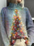 Beautiful Christmas Tree Print Knit Turtleneck Pullover Sweater