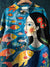 Beauty And The Fishes Art Printed Women's Casual Cotton And Linen Shirt