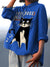 Black and White Cat and Jazz Decorative Pattern Casual Cotton And Linen Shirt