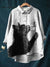 Black Cat And Dandelion Art Printed Women's Casual Cotton And Linen Shirt