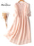 Cotton And Linen V-Neck Three-Quarter Sleeves Loose Solid Color Waist A-Line Dress