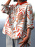 Decorative Pattern of Slender Leaves In Red Tones Casual Cotton And Linen Shirt