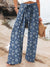 Denim Style Heart And Star Pattern Printed Women's Cotton And Linen Casual Pants