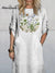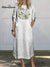 Embroidery Style Floral Bush Pattern Printed Women's Comfortable Linen Pocket Dress