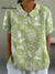 Green Spring Meadows Pattern Printed Women's Casual Cotton And Linen Shirt