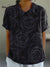 Midnight Black Rose Pattern Printed Women's Casual Cotton And Linen Shirt