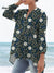 Midnight White Floral Pattern Printed Women's Casual Linen V-neck Shirt