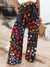 Rainbow Color Botanical Garden Pattern Printed Women's Cotton And Linen Casual Pants