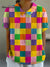 Rainbow Color Check Pattern Printed Women's Casual Cotton And Linen Shirt