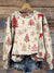 Red Reindeer & Christmas Trees Cozy Retro Christmas Print Casual Sweatshirt