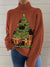 Retro Cat Cat Christmas Tree Print Knit Turtleneck Pullover Sweater