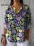 Retro Style Purple And Yellow Floral Pattern Printed Women's Casual Cotton Linen Shirt