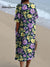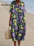 Retro Style Purple And Yellow Floral Pattern Printed Women's Flowy Dress