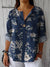 Women'sDecorative Pattern of Small White Petals On Blue Background Casual Cotton Linen Shirt